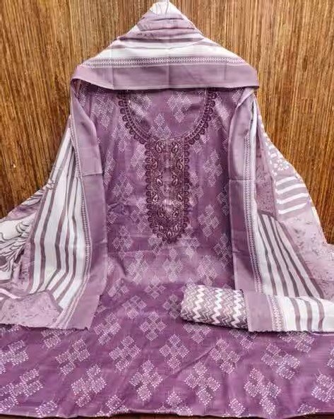 Package contains: 1 topwear fabric, 1 bottomwear fabric, 1 dupatta