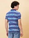 Men Printed, Typography Polo Neck Cotton Blend Blue T-Shirt