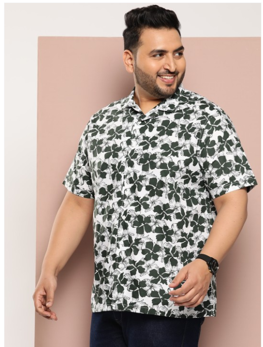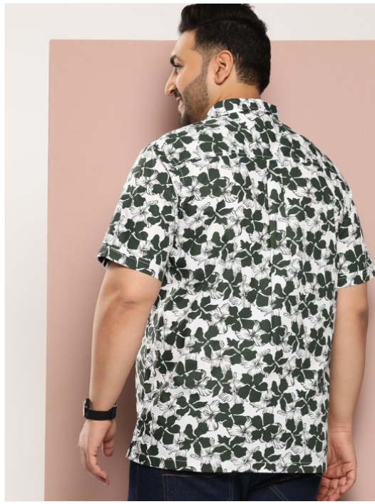 White floral printed opaque Casual shirt ,has a cuban collar, button placket, short regular sleeves, curved hem