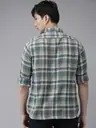 Men Slim Fit Checkered Button Down Collar Casual Shirt