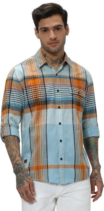 Men Slim Fit Checkered Spread Collar Casual Shirt