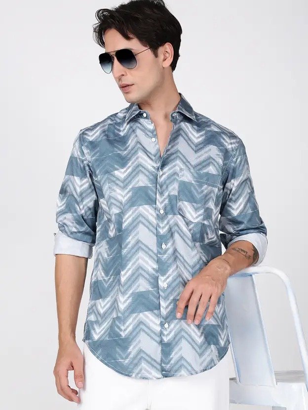 Men Regular Fit Printed Spread Collar Casual Shirt