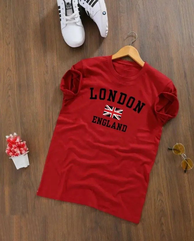 Men Printed Round Neck Pure Cotton Red T-Shirt
