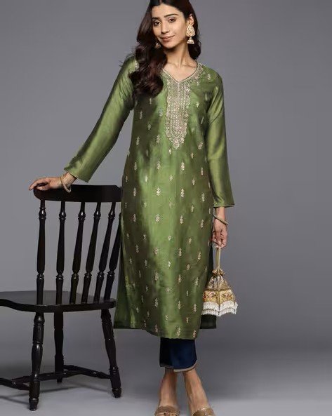 Women Embroidered Straight Kurta