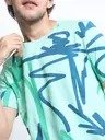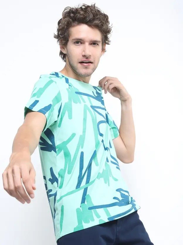 Men Printed Round Neck Pure Cotton Blue T-Shirt