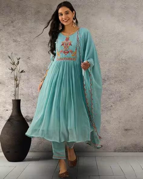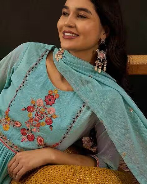 Women Embroidered Straight Kurta with Pants & Dupatta