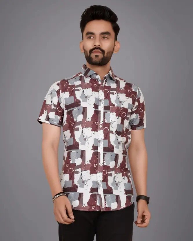 Men Regular Fit Printed Spread Collar Casual Shirt