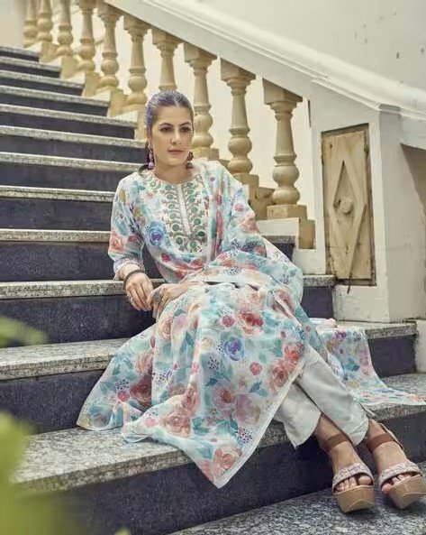 Women Floral Print Straight Kurta Suit Set