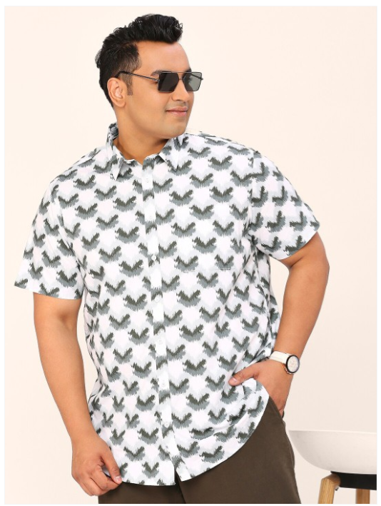 Olive green conversational printed opaque Casual shirt ,has a spread collar, button placket, 1 patch pocket, short regular sleeves, curved hem