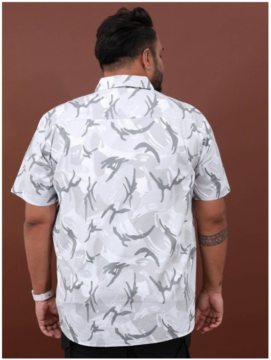 White & grey abstract printed opaque Casual shirt ,has a spread collar, button placket, 1 patch pocket, long regular sleeves, curved hem