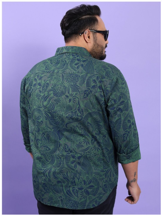 Olive green floral printed opaque Casual shirt ,has a spread collar, button placket, 1 patch pocket, long regular sleeves, curved hem