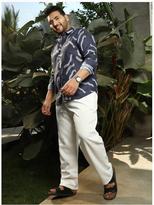 Blue graphic printed opaque Casual shirt ,has a spread collar, button placket, na pocket, long regular sleeves, curved hem