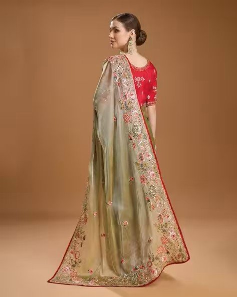 Women Embroidered Saree with Contrast Border