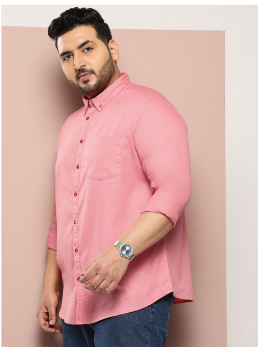 Pink solid opaque Casual shirt ,has a button-down collar, button placket, 1 patch pocket, long regular sleeves, curved hem