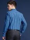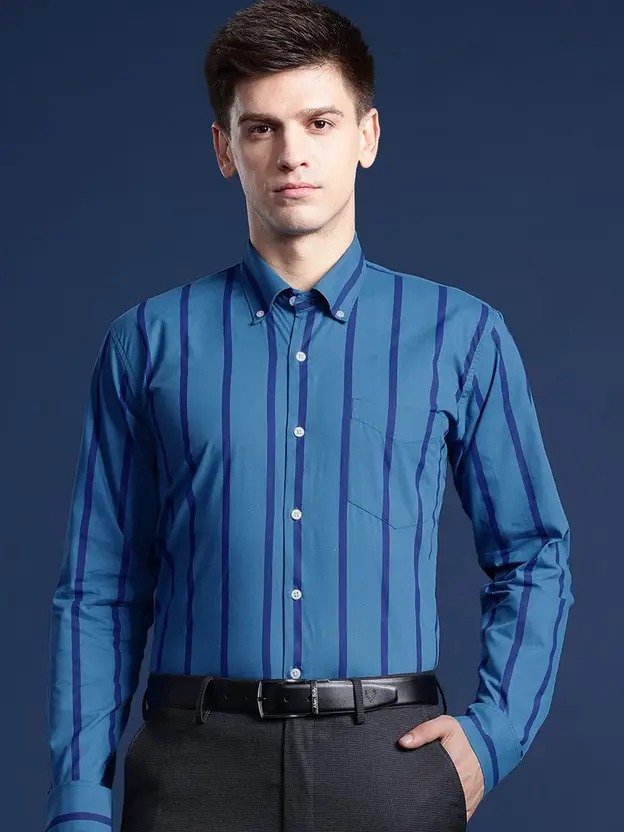 Men Slim Fit Striped Button Down Collar Formal Shirt