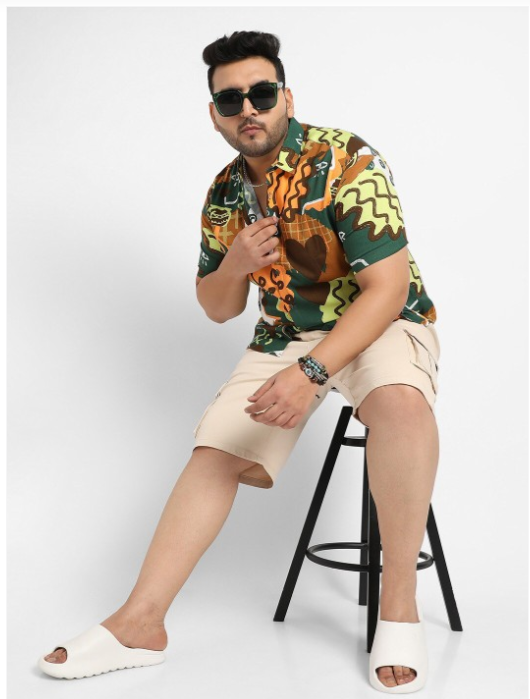 Mustard, green & white conversational printed opaque casual shirt ,has a spread collar, button placket, short regular sleeves, curved hem