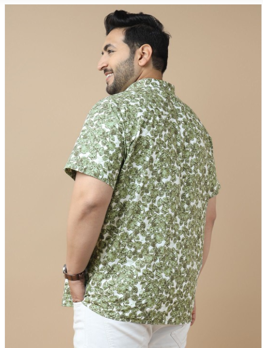 Green floral printed opaque Casual shirt ,has a spread collar, button placket, 1 patch pocket, short regular sleeves, curved hem