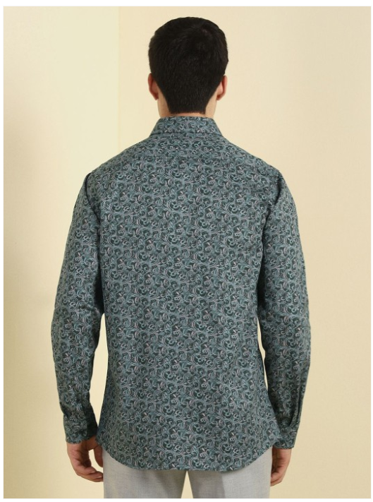Green floral printed opaque Formal shirt ,has a spread collar, button placket, na pocket, long regular sleeves, curved hem