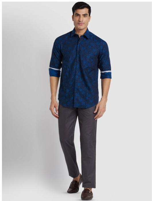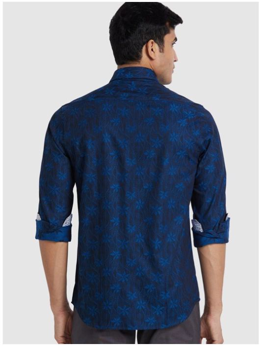Blue floral printed opaque Casual shirt ,has a spread collar, button placket, 1 pocket, long regular sleeves, curved hem