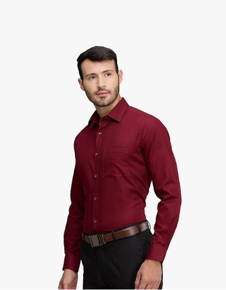 Men's Slim Fit Solid Pattern Pure Cotton Full Sleeve Semi Cut Away Collar Formal Shirt