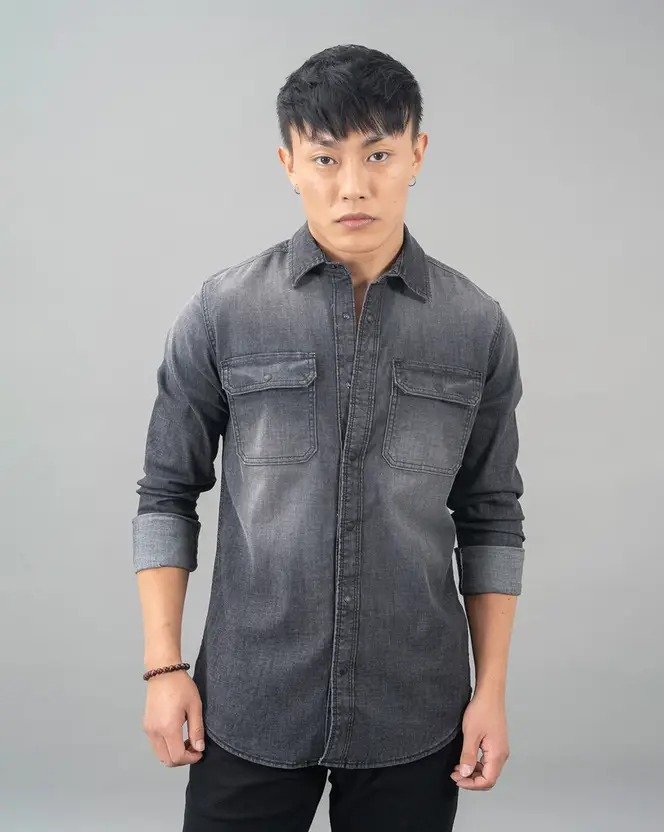 Men Regular Fit Solid Spread Collar Casual Shirt