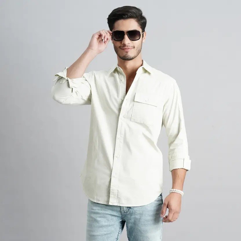 Men Slim Fit Solid Spread Collar Casual Shirt