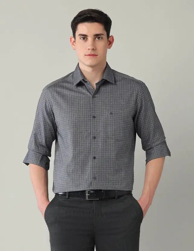 Men Slim Fit Checkered Cut Away Collar Formal Shirt