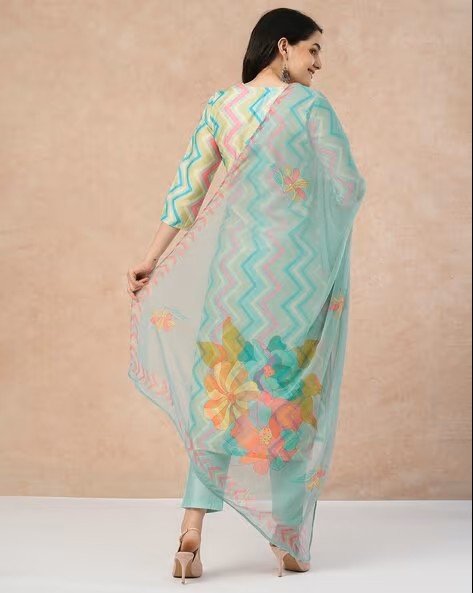 Women Geometric Print Straight Kurta & Pants with Dupatta