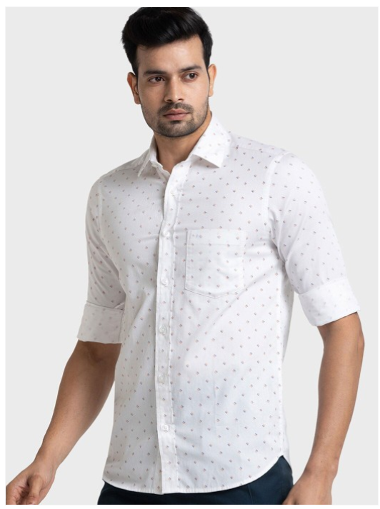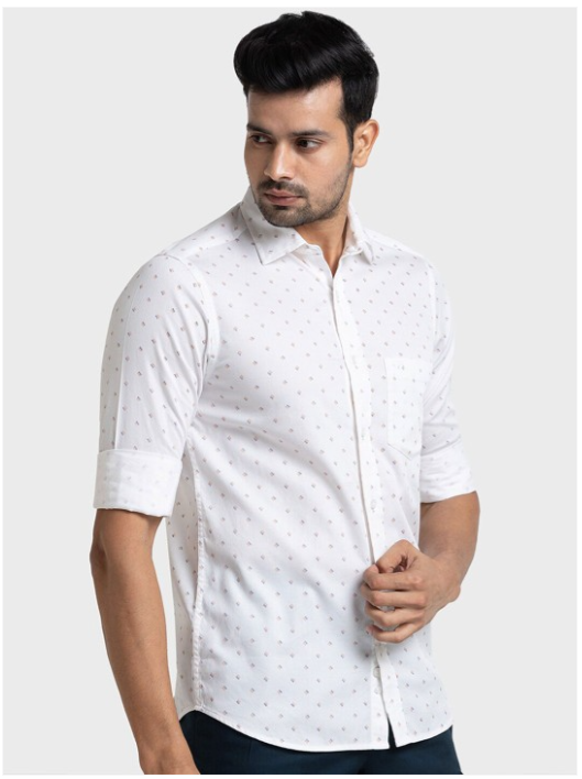 White micro ditsy printed opaque Casual shirt ,has a spread collar, button placket, 1 pocket, long regular sleeves, curved hem