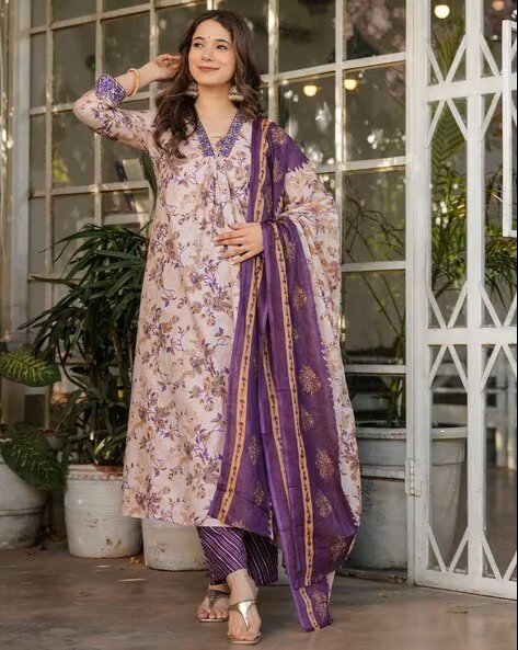 Women Floral Print A-Line Kurta Suit Set