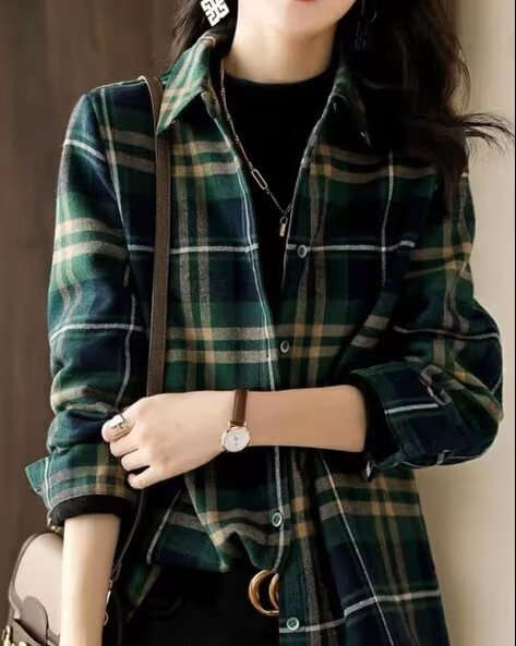 Women Checked Oversized Shirt