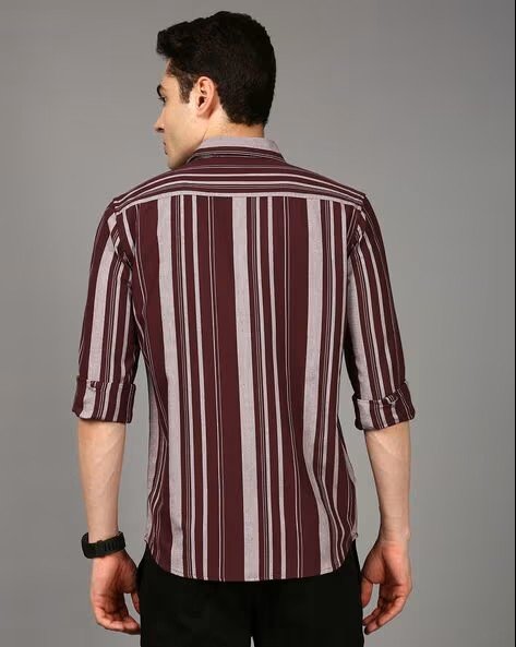 Men Striped Slim Fit Shirt with Patch Pocket