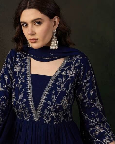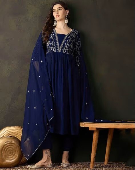 Floral Embroidered Flared Kurta with Pants & Dupatta