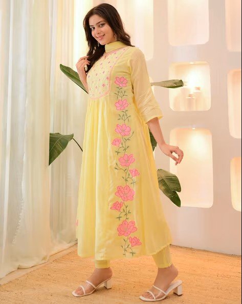 This is an amazing range of Women Flared Kurta Suits Sets in made from the Premium fabric soft and solid elegant colours that looks perfect for regular wear. With beautiful designs and patterns, these apparels are very stylish and comfortable too. Get rid of the regular look this season wearing this Kurta Set perfect blend of comfort and traditional style. Each package contains 1 set including Kurta, Pant, and Dupatta. Perfect for adding sophistication to your Wardrobe.