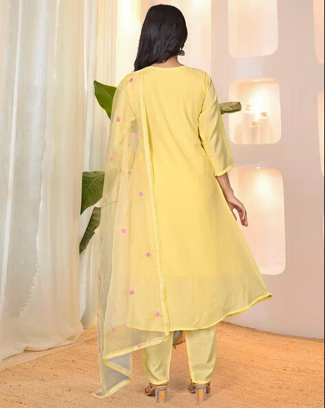Paired with straight-fit matching pants and a lightweight dupatta featuring subtle embroidered detailing, this ensemble is perfect for festive gatherings, casual outings, or family functions.