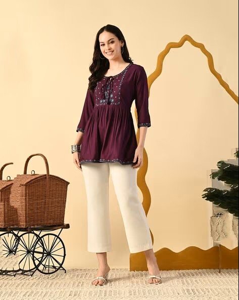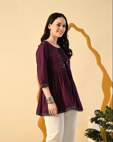 Women Embroidered Flared Tunic