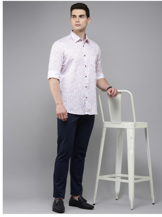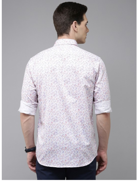 White, purple and orange ethnic motifs printed opaque casual shirt, has a spread collar, button placket, 1 patch pocket, long regular sleeves, curved hem.
