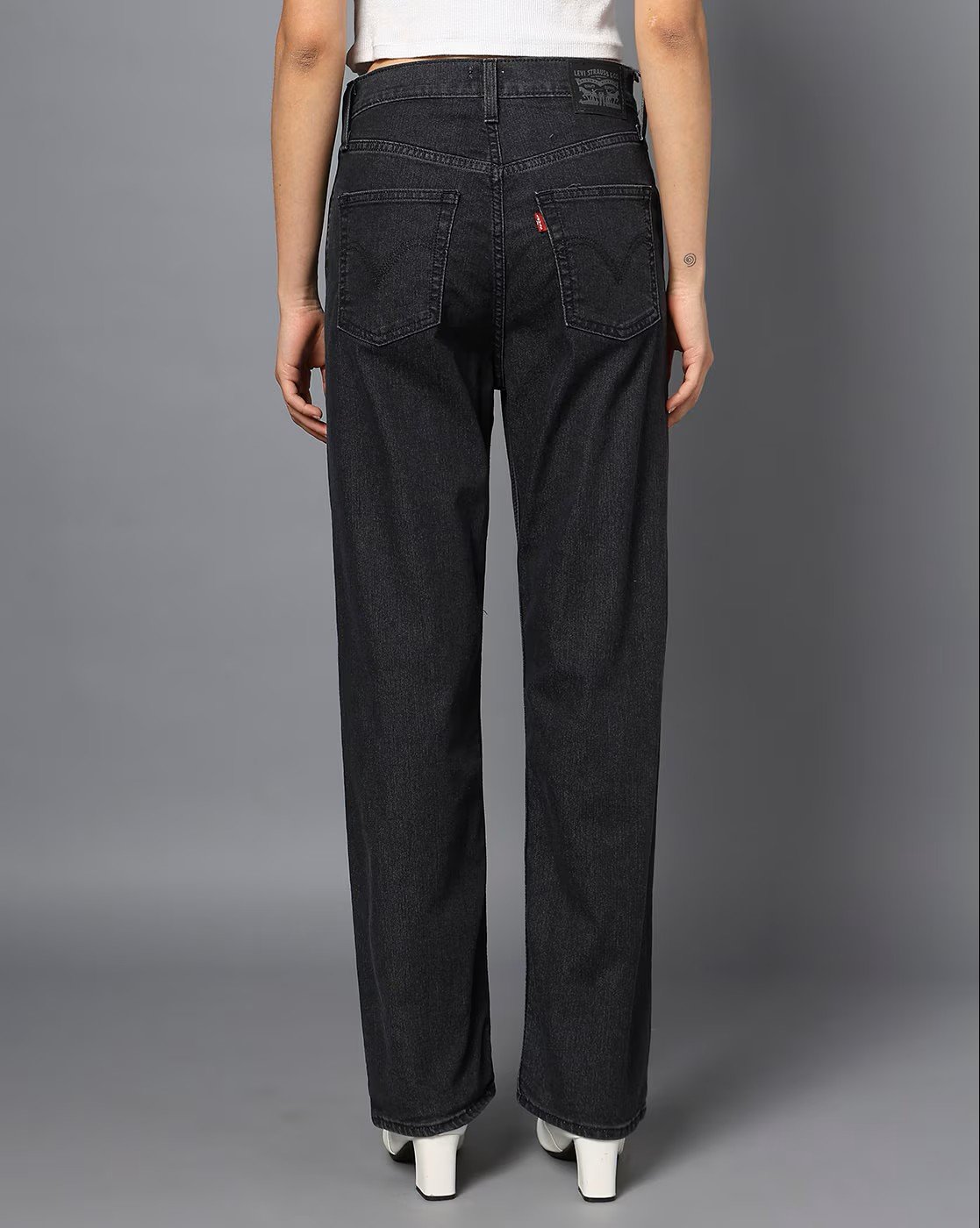 Women's High Rise Ribcage Slim Straight Fit Black Jeans