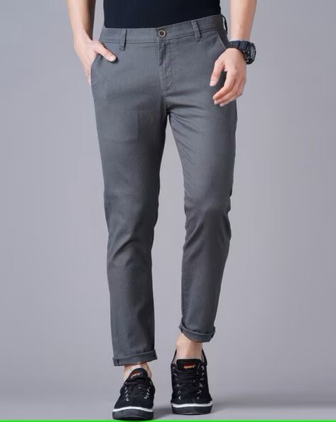 Slim Fit Flat-Front Trousers with Insert Pockets