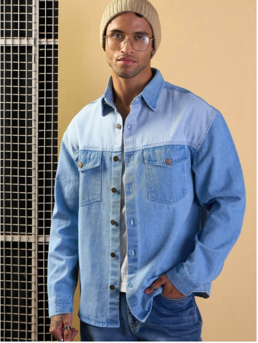 Blue opaque casual shirt