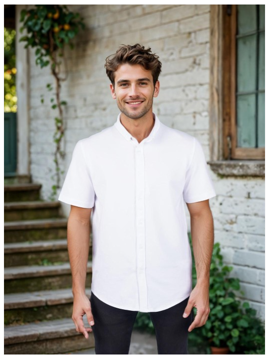 White solid opaque Casual shirt ,has a button-down collar, button placket, na pocket, short regular sleeves, straight hem