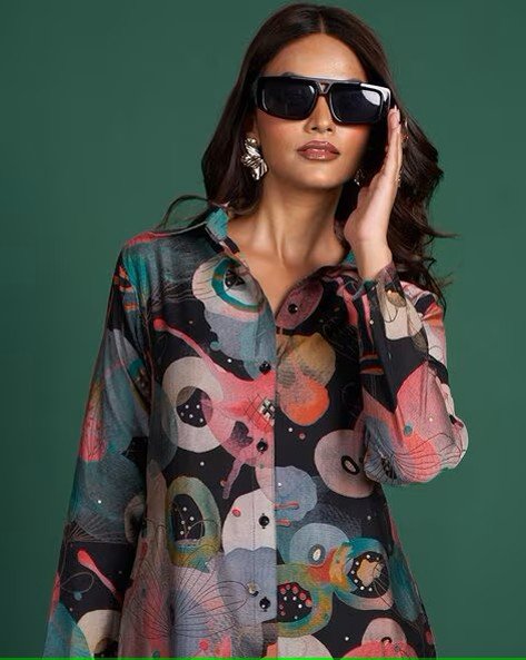 Women Printed Midi Shirt Dress