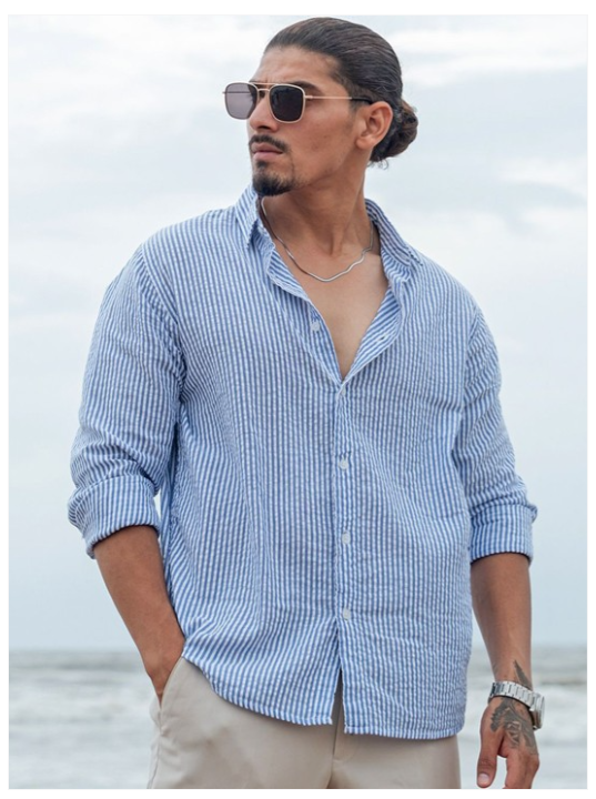 Blue micro checks checked opaque Casual shirt ,has a spread collar, button placket, na pocket, long regular sleeves, curved hem