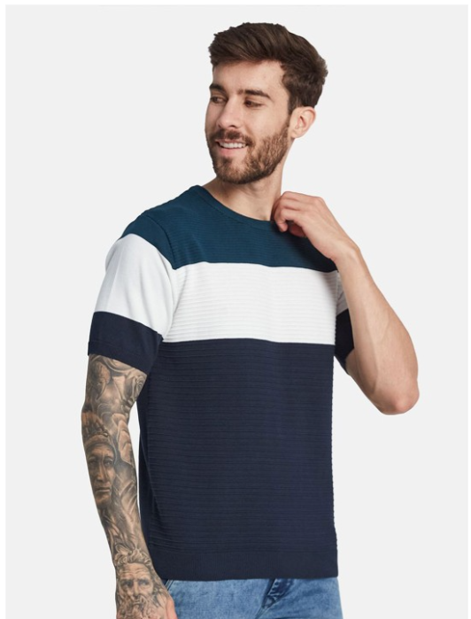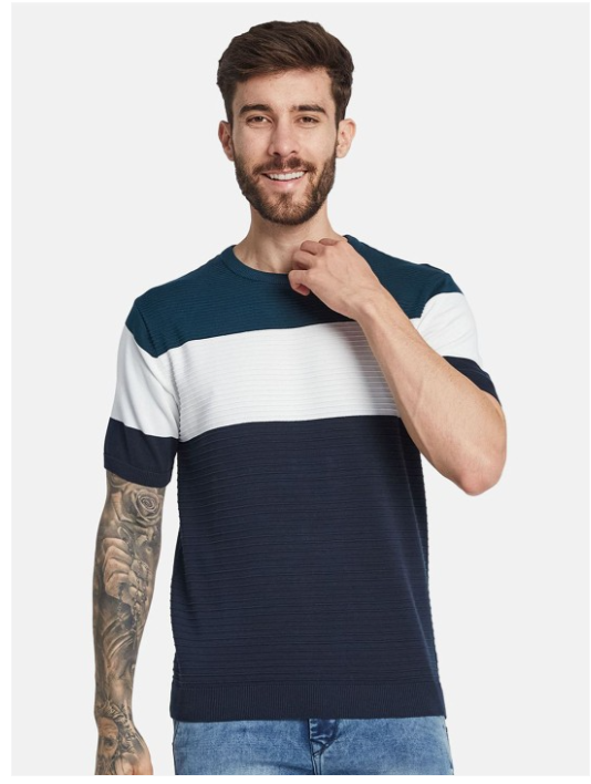 Men Round Neck Colourblocked T-shirt