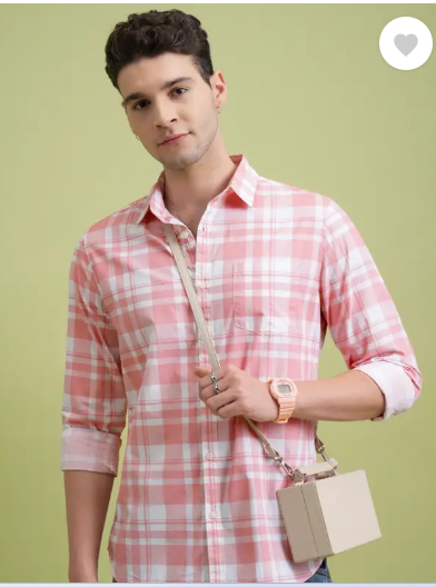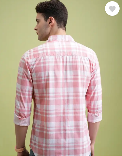 Men Slim Fit Checkered Cut Away Collar Formal Shirt
